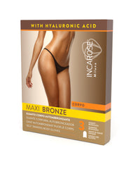 Guanti monouso autoabbronzanti per tutto il corpo arricchiti con Acido Ialuronico. Donano alla pelle una abbronzatura naturale ed uniforme senza antiestetiche macchie, mantenendola idratata e vellutata. Utilizzabili dopo il sole o lampade UV per idratare la pelle, intensificare e mantenere l’abbronzatura più a lungo. Si assorbono velocemente e non sono untuosi.